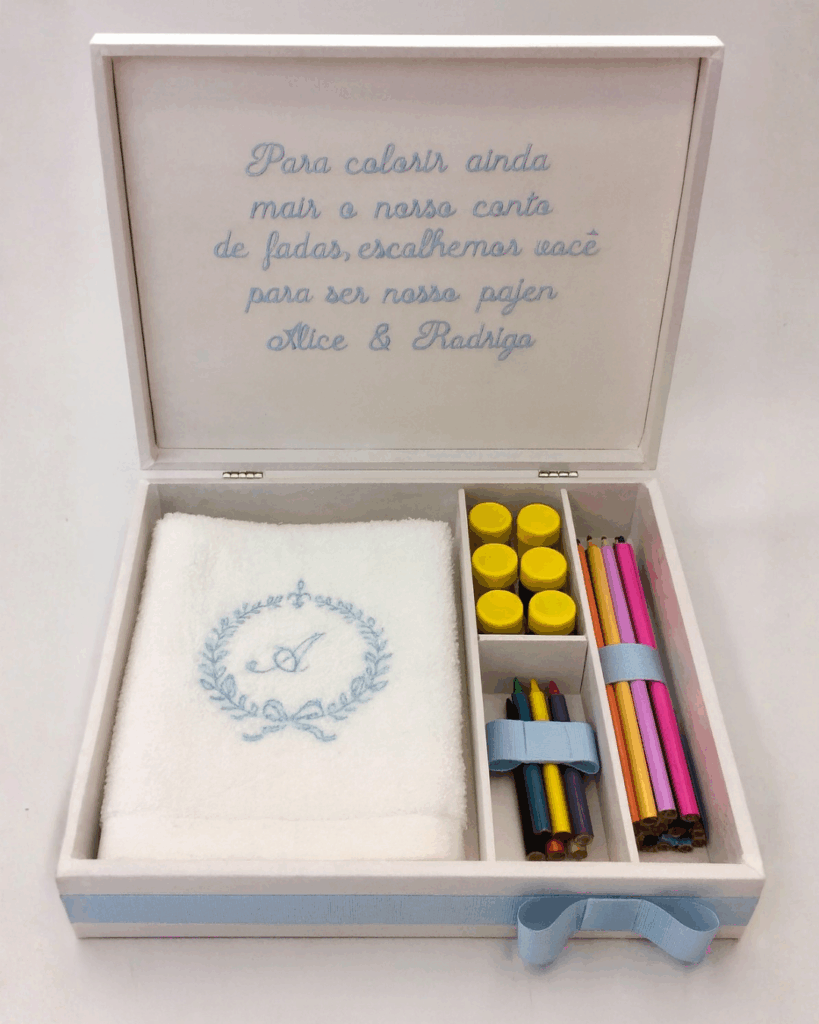 Somos um Ateliê especializado em caixas personalizadas e bordadas, criadas à mão para tornar momentos especiais ainda mais inesquecíveis. Do presente delicado ao convite sofisticado, cada peça carrega um toque único, pensado especialmente para você.